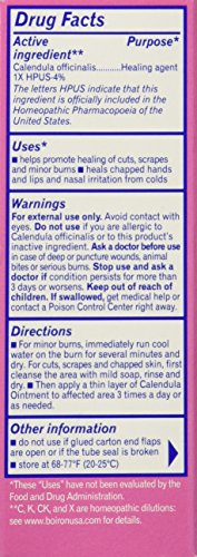 Studio : Boiron Information Center Publisher : Boiron Information Center Binding : Health and Beauty Product Description Homeopathic Medicine. Cuts. Chapping. Burns. Scrapes. No artificial colors or perfumes. Cruelty-free. Calendula officinalis is the marigold of Europe, a flower which has been known for centuries as a natural healing and soothing substance when applied locally. Calendula Ointment is made by Boiron, world leader in homeopathy. The letters HPUS indicate that this ingredient is officially included in the Homeopathic Pharmacopeia of the United States. Made in France. 0