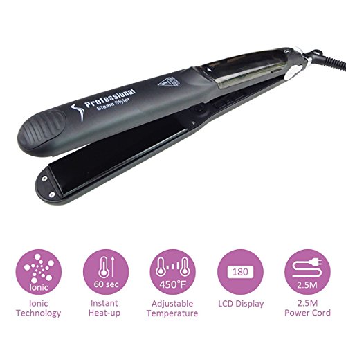 Professional Steam Hair Straightener, ManKami Argan Steam Styler Ceramic Tourmaline Flat Iron Salon Vapor Heater Hair Straightening Iron with Anion Care and Locking switch