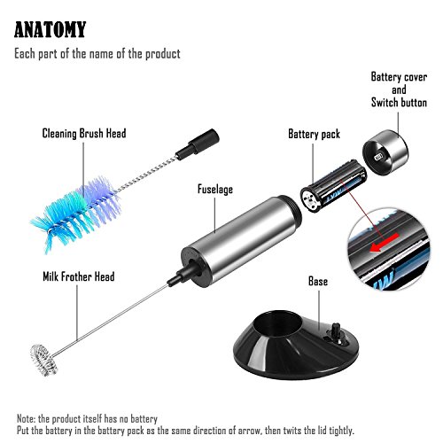 FAST FROTHING WITH A VARIETY OF FUNCTIONS: This battery operated frother is portable and perfect for the home, office, or traveling. This Milk Frother's robust motor is powerful enough to froth your desired foam in as fast as 15 seconds. Not only does this Milk Frother create creamy, perfect froth, it also can be used to mix hot or cold drinks, blend your favorite cocktail, or even whip eggs