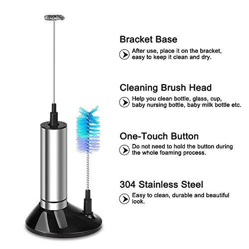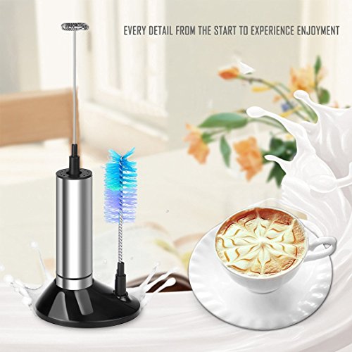Stainless Steel Electric Milk Frother Handheld - Perfect for the Best Latte, Whip Foamer with Stand