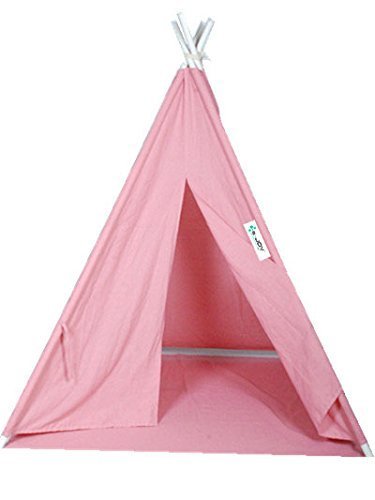 Product Description Pink teepee tent. Made of durable cotton canvas, comes with carry case and measures 48"x48"x72". It can meet all the needs of outdoor adventure, kids playing family travelling, for children ages 4 and up. 0