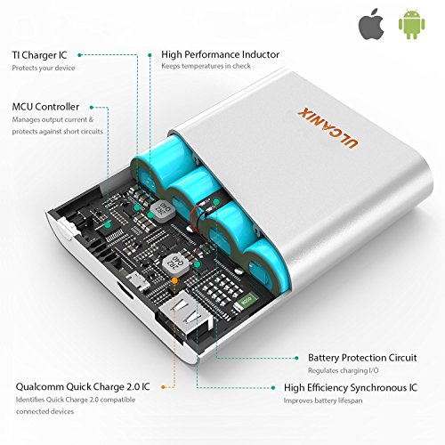 -. Binding : Wireless Phone Accessory -. Brand : Ulcanix -. Feature : BLAZING FAST CHARGING SPEEDS - Extend the battery life of your smartphone, tablet or mobile device with ultra-fast charging speeds thanks to our 10000mAh portable power bank with Qualcomm 2.0 Charge Quick technology. This charging station can recharge your iPhone 6 or Samsung Galaxy S7 up to five times! / LIGHTWEIGHT, PORTABLE DESIGN - A compact powerhouse, the ULCANIX is small enough to fit into a pocket, purse, backpack or briefcase, letting you get a quick charge at home, while on the subway, flying across the country for a business trip or taking the subway to your next appointment. / CHARGE MULTIPLE DEVICES - Boasting dual 2.1A USB charge ports, you can charge multiple cell phones, tablets or handheld devices simultaneously. This is great for long family road trips or if you're trying to charge your Blackberry and Samsung Tab S2 in time for that next business meeting or just to continue watching Netflix. / DEVICE OVERCHARGE PROTECTION - This powerful charging bank not only offers faster, more reliable charging speeds, it contains advanced safety features to protect your phone or mobile devices against overcharging or shorts. What's more, it comes with a temperature regulator to ensure you device never gets hot. / LIFETIME & MONEY BACK GUARANTEE - Every ULCANIX Power Bank comes with a 30-day, risk free money back guarantee for satisfaction, as well as a lifetime guarantee for quality craftsmanship. If your device fails to live up to quality standards, please contact us immediately for a refund or replacement. -. Label : Ulcanix -. Manufacturer : Ulcanix -. Model : Ulcanix01-110-U -. PackageQuantity : 1 -. ProductGroup : Wireless -. ProductTypeName : WIRELESS_ACCESSORY -. Publisher : Ulcanix -. Studio : Ulcanix -. Title : Slim Power Bank by ULCANIX (10000 mAh) - Quick Charge 2.0 Dual USB Portable Charger - External Battery That Compatible with iPhone, Samsung Galaxy, HTC, Smartphones & Tablets