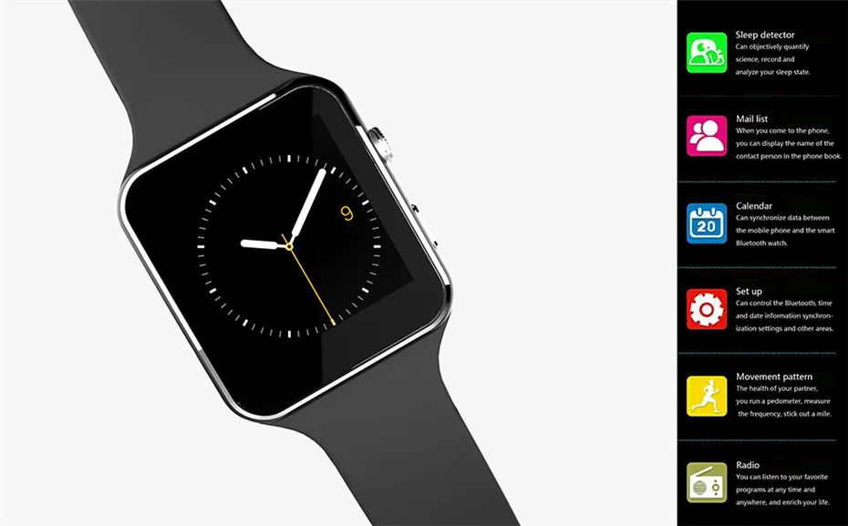 Feature:Alarm,Call Reminder,Bluetooth,Answer Call,Complete Calendar,Message Reminder