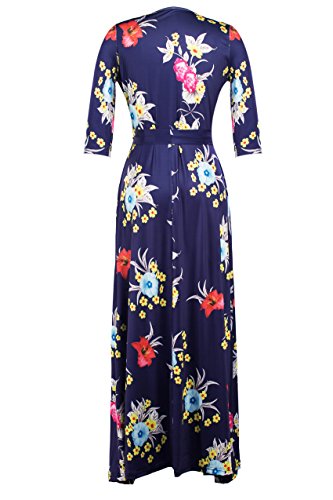 Afibi Womens Bohemian 3/4 Sleeve Faux Wrap Maxi Dress With Belt