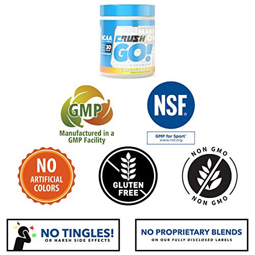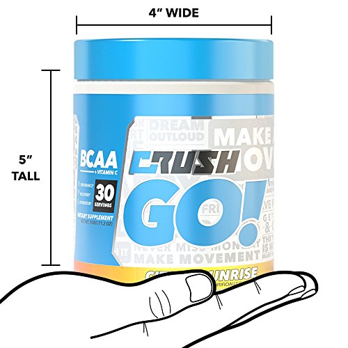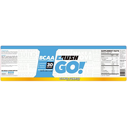 -. Binding : Health and Beauty -. Brand : Crush -. Feature : CRUSH BCAA POWDER tastes insanely good- flavor does matter, and we hear you loud and clear. / 5G + 1G VITAMIN C this ensures optimal recovery and immune health, healthy people workout harder than sick people. / FAT BURNING benefits included with the addition of Carnitine- BCAA energy without the jitters or crash / EASY ON YOUR STOMACH our branched chain amino acids do not include any fillers, preservatives, dyes, GMO's, banned ingredients, proP.R.Ietary blends, or sugars. / STACK WITH CRUSH YOLO Pre Workout- More Citruline - More Carnitine - More Fat Burning and More Recovery -. IsAdultProduct : 0 -. Label : CRUSH -. Manufacturer : CRUSH -. ProductGroup : Health and Beauty -. ProductTypeName : HEALTH_PERSONAL_CARE -. Publisher : CRUSH -. Studio : CRUSH -. Title : Crush GO! BCAA + Vitamin-C - Amino Acids For Recovery - No Fillers, No Dyes, No ProP.R.Ietary Blends