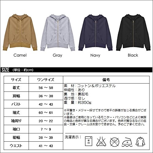 -. Feature : スウェットパーカー 裏起毛 裏フリース トレーナー フード付き 長袖 大きい ジップアップ ゆったり 無地 レディース / 【カラー】 キャメル グレー ネイビー ブラック / 【サイズ】 ワンサイズ ※詳細は画像にてご確認ください。 / 【商品仕様】 ■伸縮性:あり ■裏地:裏起毛 ■透け感:なし / フード付き 裏起毛ジップパーカー ベーシックなフード付きのZIPパーカーです♪ 飽きのこないシンプルなデザインで大人のベーシックコーデに! 着回し抜群なのでロングシーズンお使いいただけます♪ ふんわりとした柔らかな生地を使用した 裏起毛でポケットの中も暖かい♪ 高級感漂うゴールドのジッパーがワンポイント!!
