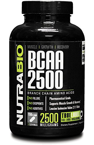 NutraBio BCAA 2500 - 150 Vegetable Capsules (Branched Chain Amino Acids)