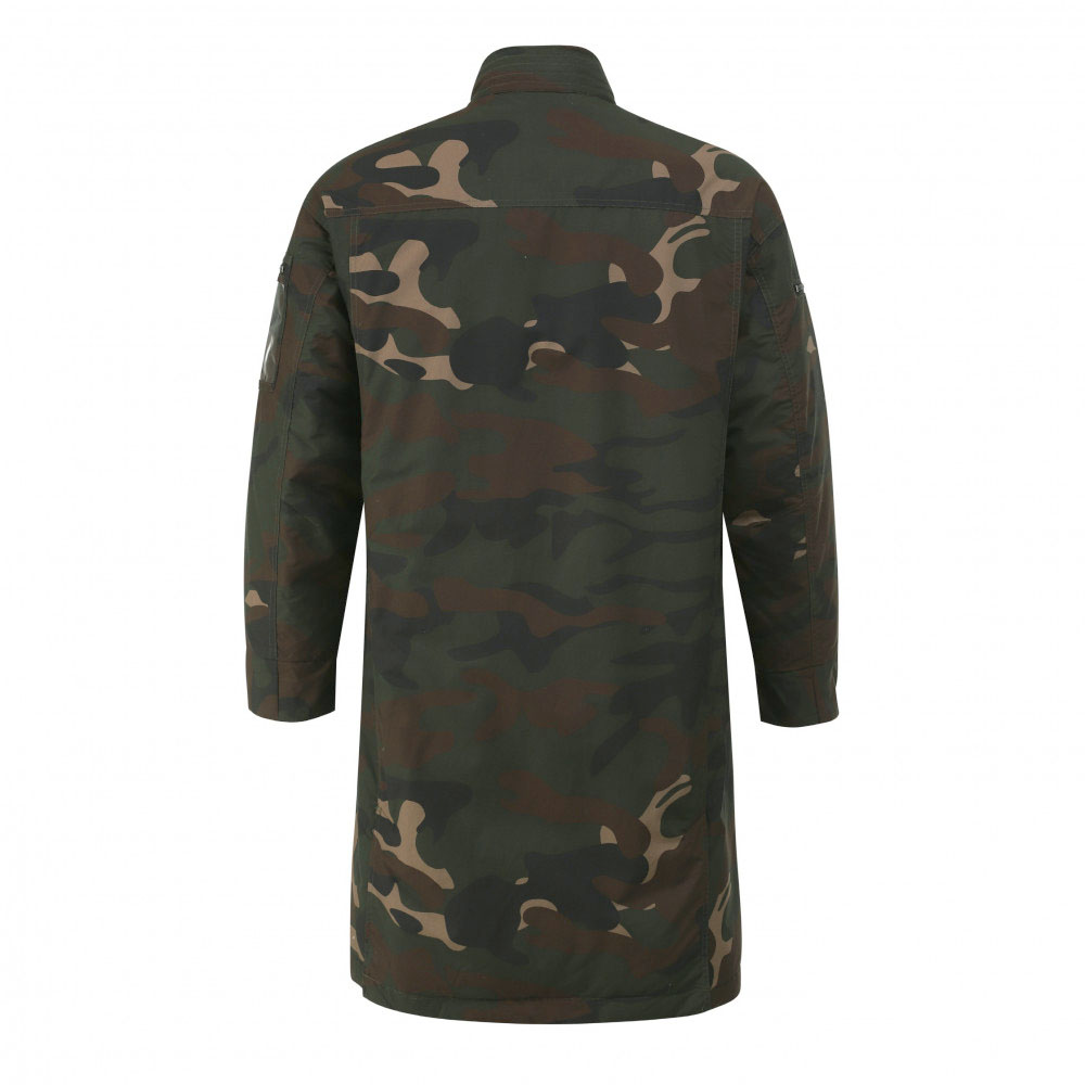 오버사이즈 핏의 덕다운 밀리터리 패딩 파카. 멋스러운 핏과 전면 벨크로 패치와 소매의 투명 창 디테일이 돋보이는 제품이다