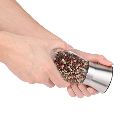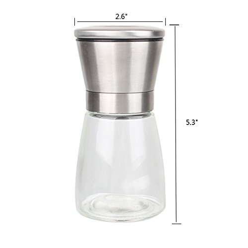 ✔ GREAT QUALITY - Be made of a beautiful sturdy glass vessel and a premium quality 304 brushed stainless steel that will never rust! This pepper grinder comes with adjustable ceramic grinding mechanism which allows you to easily adjust from a fine to coarse grind.
