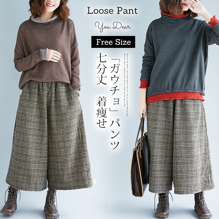 ワイドパンツスーツ 七分丈 レディース ワイドパンツ チェック柄 ガウチョパンツ カジュアルパンツ 秋 冬 パンツ ウエストゴム 着痩せ レディースボトムス 通勤 オフィス OL 森ガール 20代 30代 40代 50代 ファション おしゃれ★素材:ポリエステル生産国:中国柔軟度:柔らかめ★カラー:写真参考※お客様ご使用のPC環境により商品画像のカラーが多少異なる場合があります。仕入時期により多少デザインなど異なる場合があります。ご了承ください。★サイズ(CM):F:ウエスト70-110cm ヒップ132 総丈81cm※サイズは人の手によって測っているため、1-3cmの誤差がある場合がございます。予めご了承下さいませ。