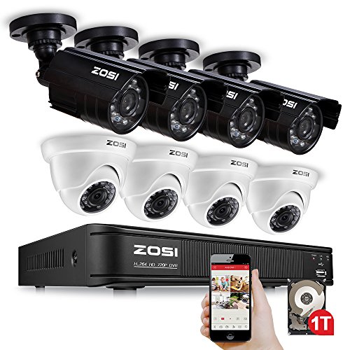 -. Title : ZOSI 8CH CCTV System Kit 720P AHD Security DVR 8PCS 720P(1280TVL) Weatherproof CMOS Cameras 65ft(20m) Night Vision Surveillance System 1TB HDD Built-in