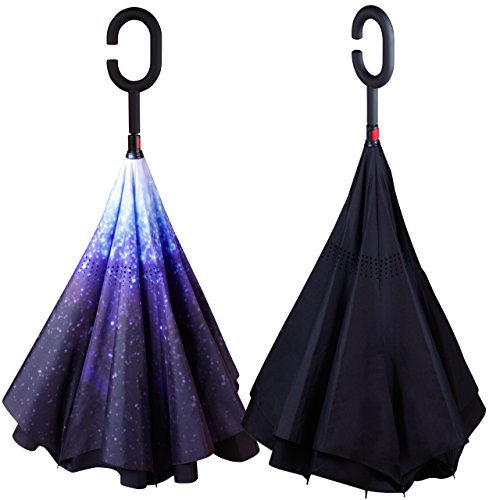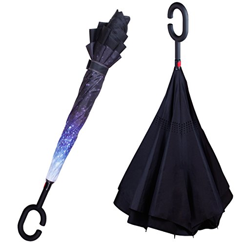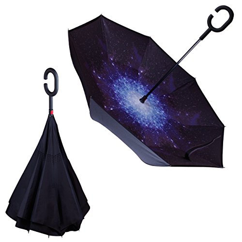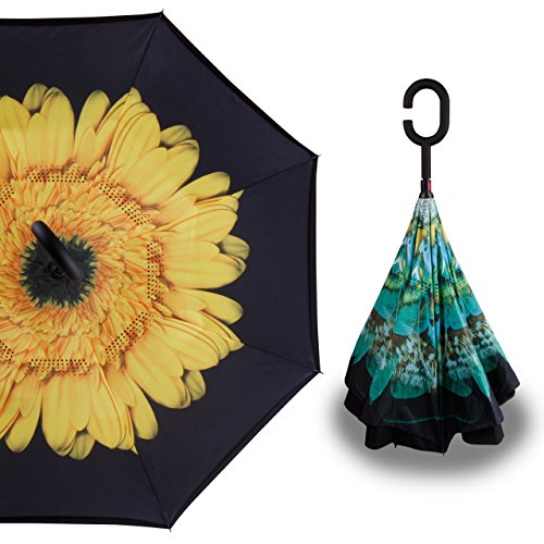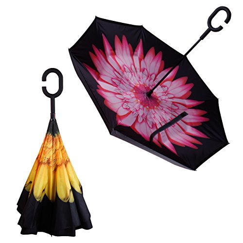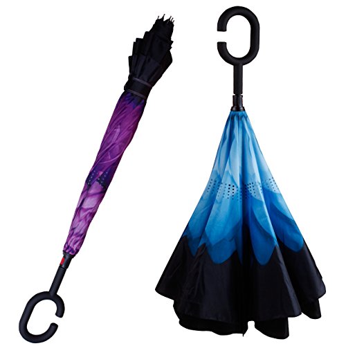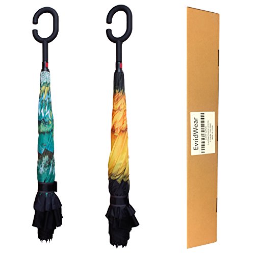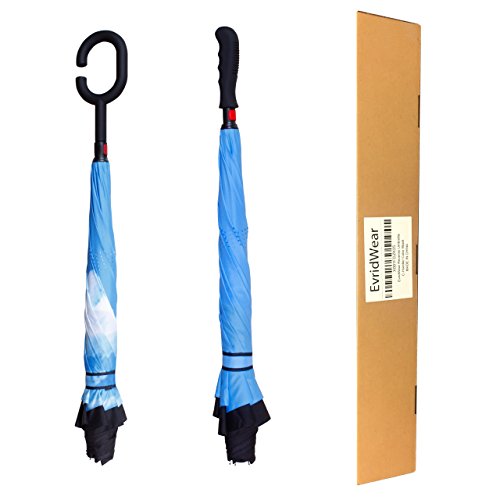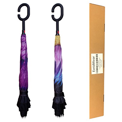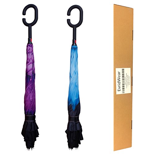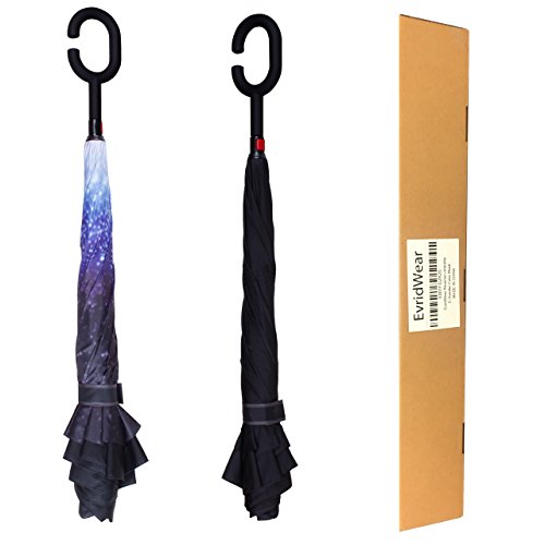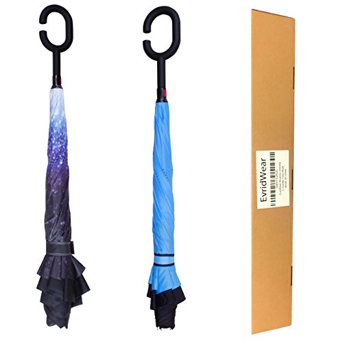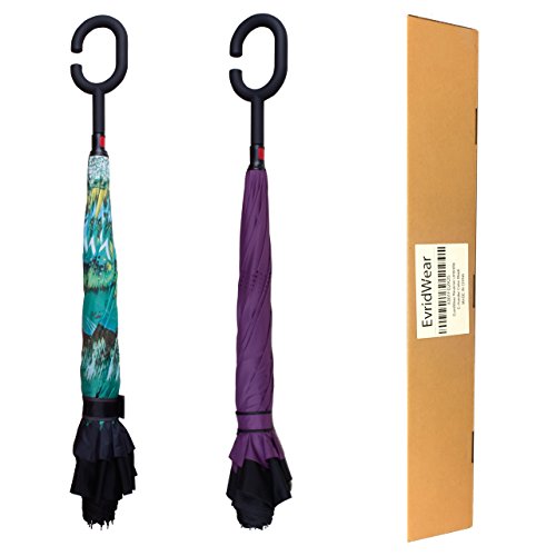 EvridWear Inverted Umbrella, a creative way to make your life different! The umbrella was invented 3000 years ago, however, did you come across following problems? Your clothes, car, floor will get wet when you close an ordinary umbrella, but no with the EvridWear Inverted Umbrellas. Reverse Function - Inside -out design allows you to close the umbrella in an reverse direction, which means the outside layer will become inside after closing, preventing water from dripping, keeping floors and cars dry. Triple Protection - Strong windproof, waterproof and UV Protection, to protect you from wind, rain and sun at anytime. Different Handle Choice - Hands free by hanging the C-shaped handle on your wrist, freeing up both hands for use with cellphones and mothers carrying a baby. You can also choose the ribbed, soft-textured comfortable straight handle. Self-stand - it will stand up by itself without wetting the wall! Package Contents: 2 EvridWear Inverted Umbrella 2 Protective Umbrella carrying bag 1 Gift Box EvridWear is a responsible brand who pursues to maximize customer satisfaction, GREATER QUALITY, LOWER PRICE! We promise a 100% money back guarantee if you are not satisfied with the product! If you have any question, please feel free to contact us. 0 |