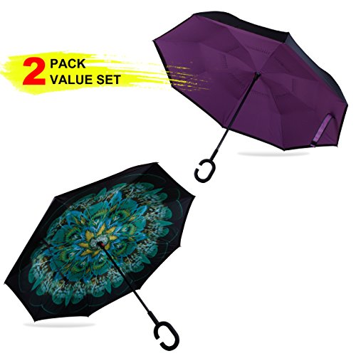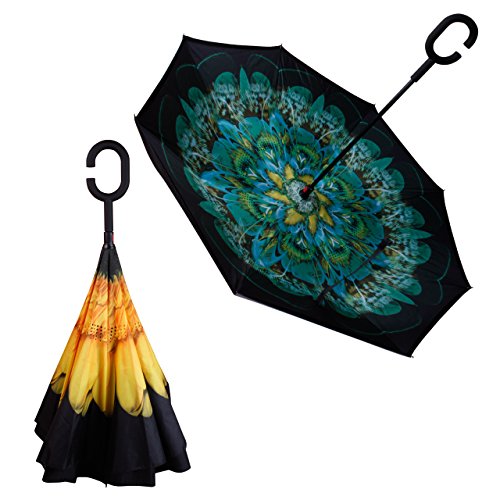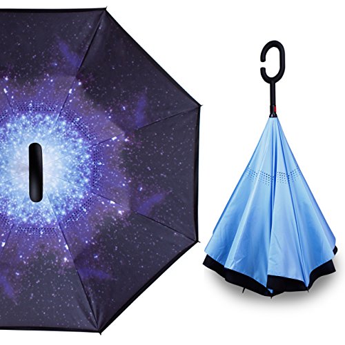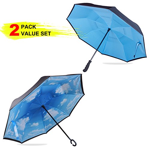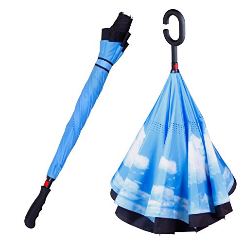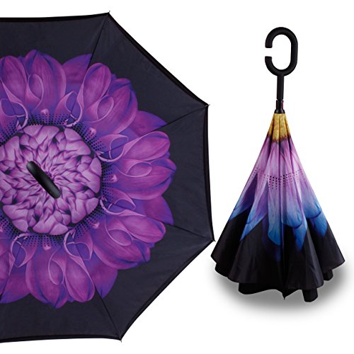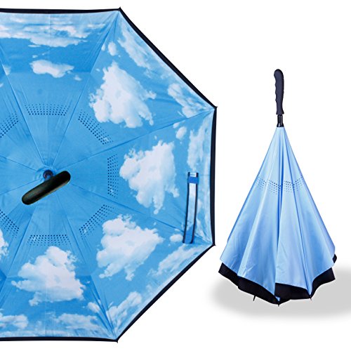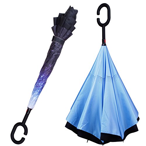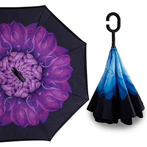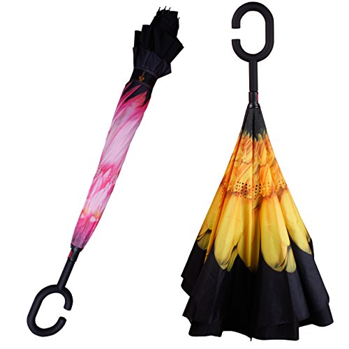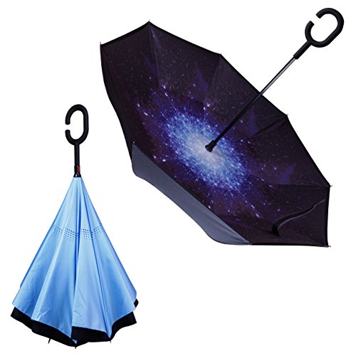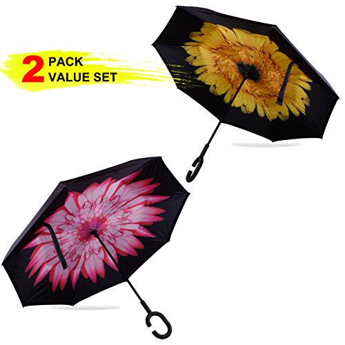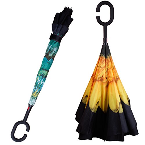 EvridWear Inverted Umbrella, a creative way to make your life different! The umbrella was invented 3000 years ago, however, did you come across following problems? Your clothes, car, floor will get wet when you close an ordinary umbrella, but no with the EvridWear Inverted Umbrellas. Reverse Function - Inside -out design allows you to close the umbrella in an reverse direction, which means the outside layer will become inside after closing, preventing water from dripping, keeping floors and cars dry. Triple Protection - Strong windproof, waterproof and UV Protection, to protect you from wind, rain and sun at anytime. Different Handle Choice - Hands free by hanging the C-shaped handle on your wrist, freeing up both hands for use with cellphones and mothers carrying a baby. You can also choose the ribbed, soft-textured comfortable straight handle. Self-stand - it will stand up by itself without wetting the wall! Package Contents: 2 EvridWear Inverted Umbrella 2 Protective Umbrella carrying bag 1 Gift Box EvridWear is a responsible brand who pursues to maximize customer satisfaction, GREATER QUALITY, LOWER PRICE! We promise a 100% money back guarantee if you are not satisfied with the product! If you have any question, please feel free to contact us. 0 |
