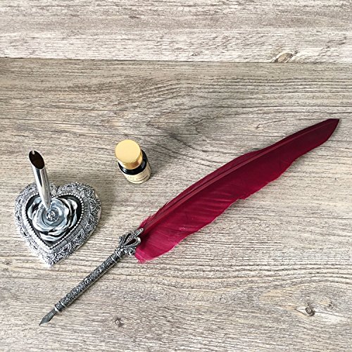 -. Feature : High quality quill pen, delicate and practical, also looks pretty. / Antique feather quill pen, loyal to the spirit of ancient European in making pens / The total length of the pen is about 350mm, it includes a quill pen, 1 Empty ink Bottle, a pen stand and gift box packing. / The vintage quill stylus is a charming antique writing instrument,as a writing instrument to record every stage of European civilization. Elegant in appearance and appearing demeanor upon writing, it prospers all the rage in Europe and for a long historical period / Creative and fantastic gift for all.