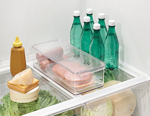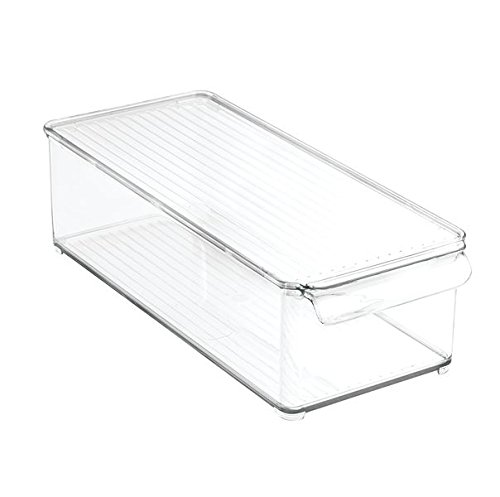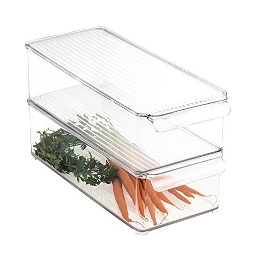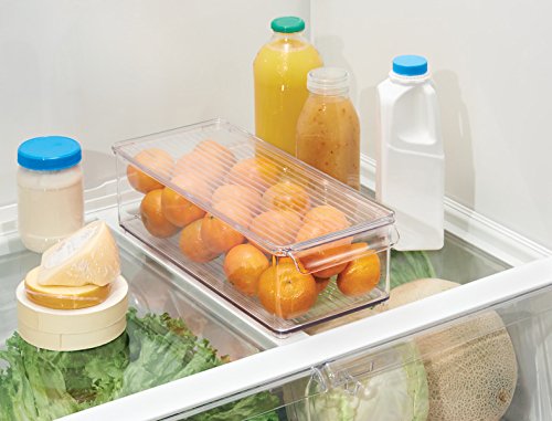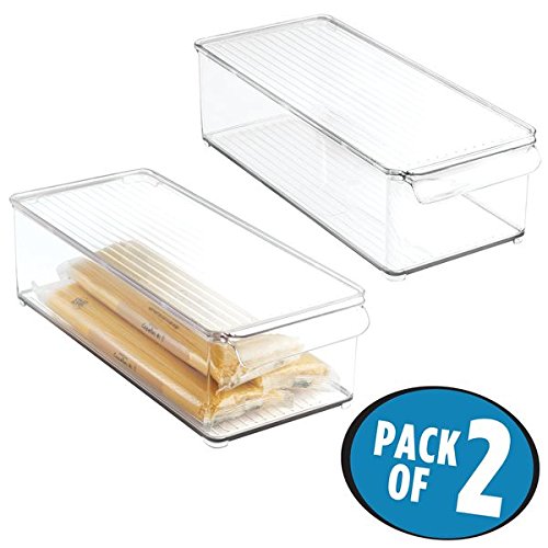 mDesign Refrigerator, Freezer, Pantry Cabinet Organizer Bin with Lid for Kitchen - Pack of 2, 6" x 4" x 14.5", Clear