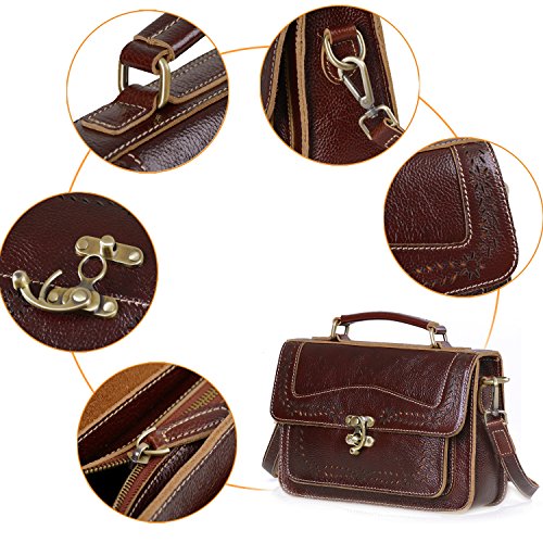 -. Feature : 【HIGH QUALITY LEATHER】: Handmade and crafted of genuine cowhide LEATHER with vintage BRASS hardware and CANVAS lining / 【OCCASION】: Party, Dating, Office, Travel and business, Ideal GIFT for women; / 【DIMENSION】: (L*H*W) 26.7*18.5*8 cm / 10.51*7.28*3.15 inches; Net weight: 2 pounds; / 【DESIGN】: Simple and generous design, Hook clasp closure, Front pocket, Adjustable shoulder strap, Neat stitching; / 【PRACTICAL】: Large capacity, Multi-functional, The handbag is easy to hold iPad Air 2, cell phone, keys, coin purse, wallets and so on;