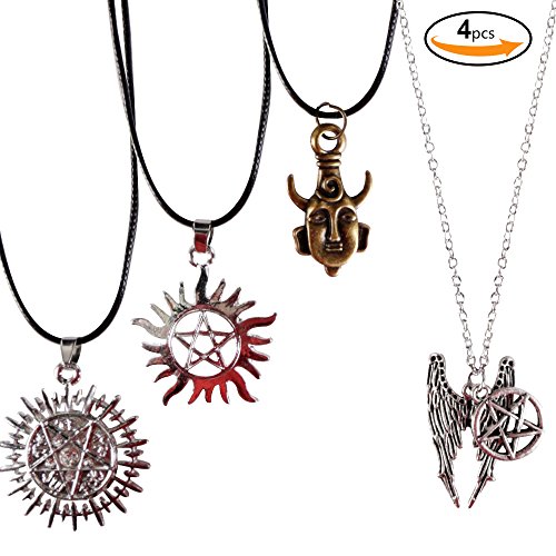 Package Include:1x Wings Protection Symbol Pendant 1x Supernatural Dean's Amulet Necklace1x anti-possession symbol pendant1x Supernatural Inspired Necklace
