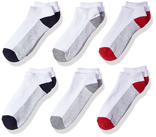 -. Binding : Apparel -. Brand : Fruit of the Loom -. ClothingSize : 6-7.5 White -. Department : boys -. Feature : Kick-proof construction designed to keep socks on little feet / Soft stretch top gently conforms to legs for additional comfort / Super soft cotton/polyester blend and a touch of spandex for the ultimate fit / Reinforced sole provides more durability so these socks will last / Sure-match sizing for easy sorting -. Label : Fruit of the Loom -. Manufacturer : Fruit of the Loom -. PackageQuantity : 1 -. ProductGroup : Apparel -. ProductTypeName : SOCKSHOSIERY -. Publisher : Fruit of the Loom -. Size : 6-7.5 White -. Studio : Fruit of the Loom -. Title : Fruit of the Loom Boys' 6 Pack No Show Socks