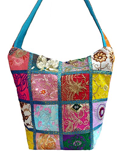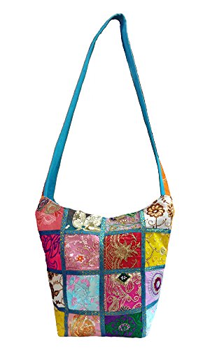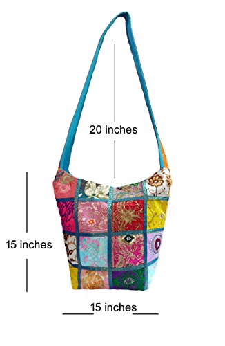Embroidered Sequin Patchwork Indian Sari Throw Decorative Sling Cross body Shoulder Bag, Boho H...