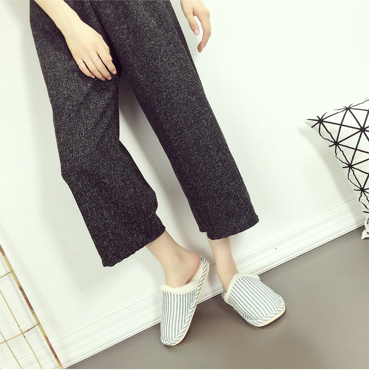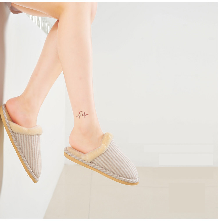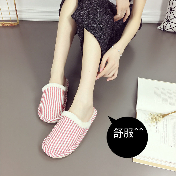 秋冬季保暖条纹棉拖鞋 家居室内拖鞋男女情侣保暖毛拖鞋加厚底鞋