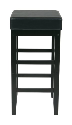 -. Feature : Espresso finish wood with veneers / Black vinyl with dense foam core / Some assembly required / Overall dimensions 30 by 17 by 17 inches / Black Vinyl Seat Cushion