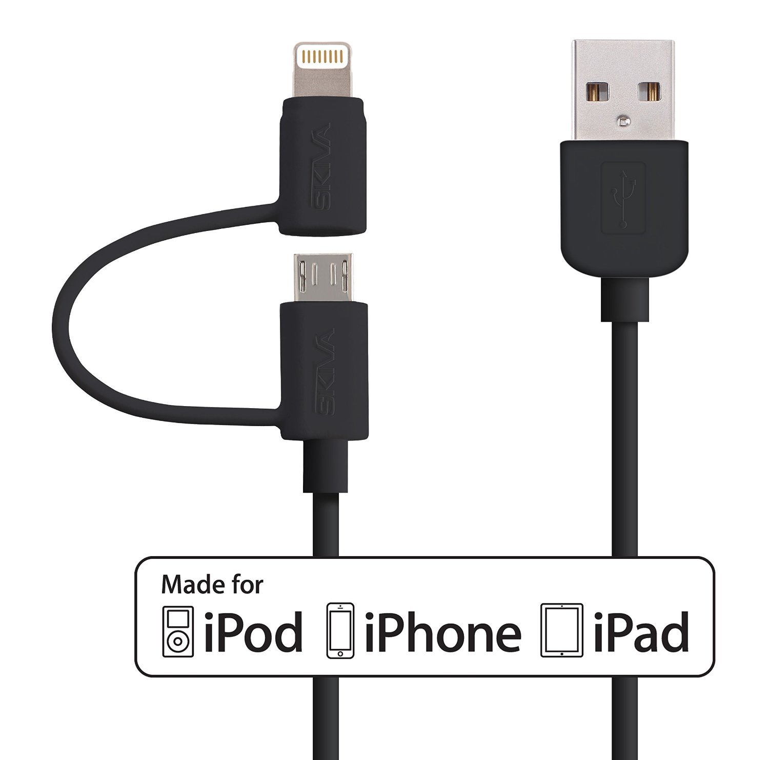 - Built-in lighting and micro-USB connectors which allows the cable to perform 2-in-1 functionality of lightning or micro-USB cable. 1 meter / 3.2 feet length is optimal for use with hard-to-reach USB ports and out-of-sight wall chargers.