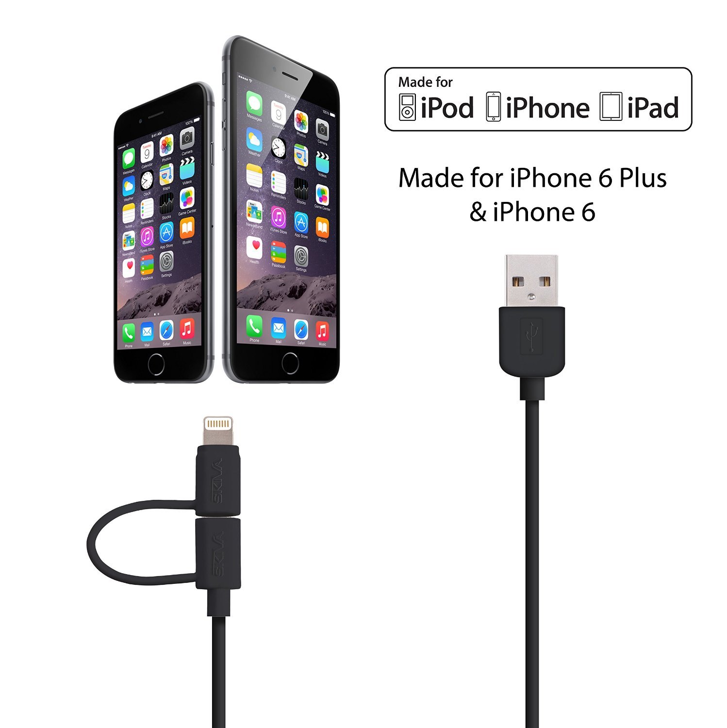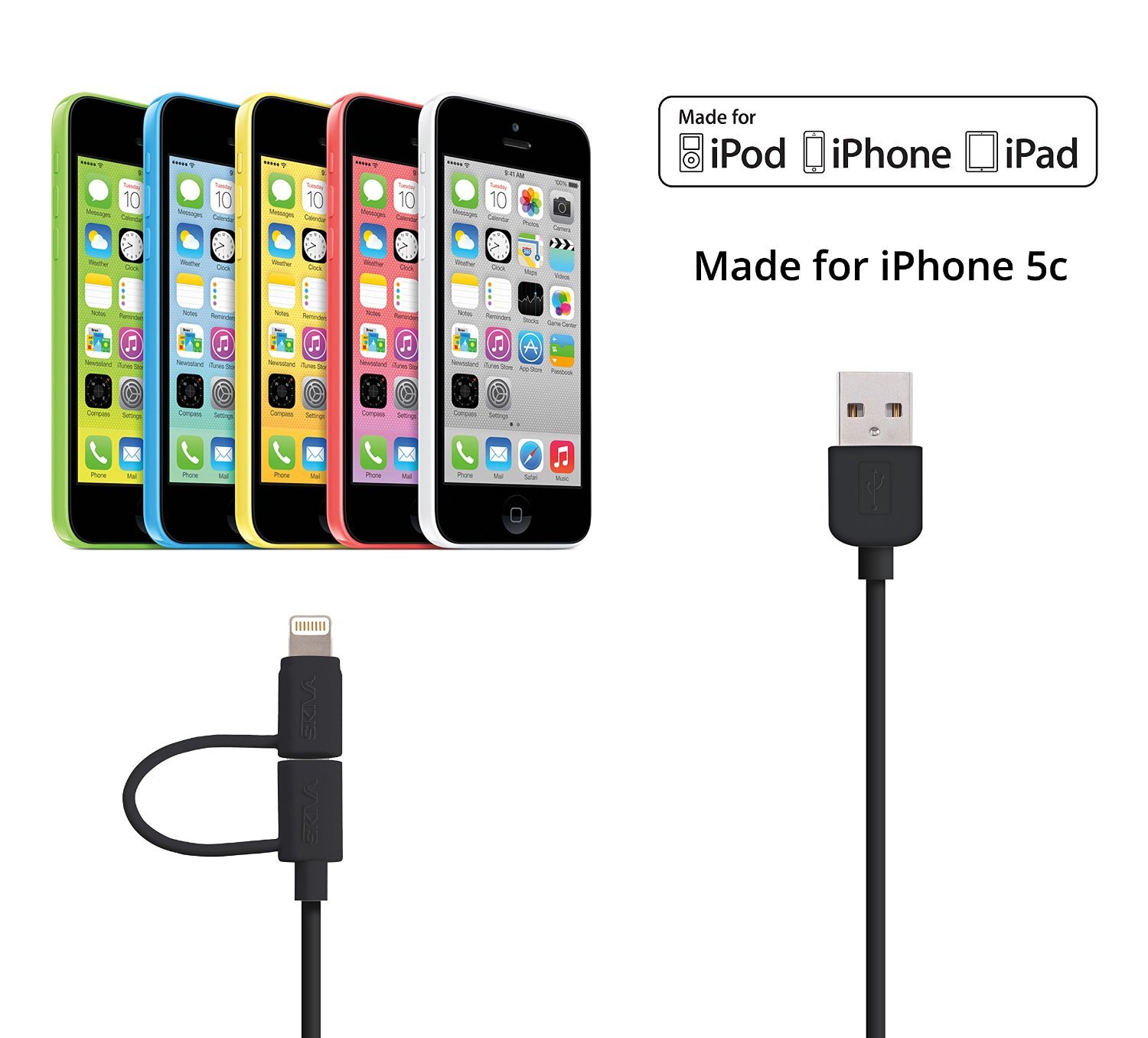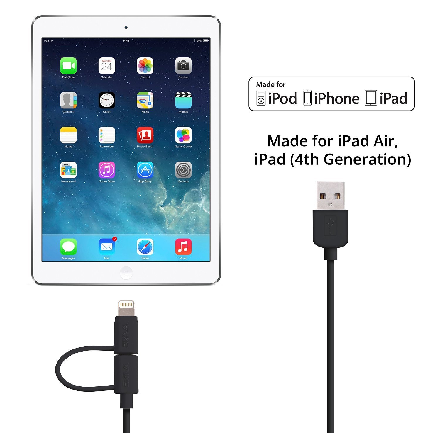 USBLink (3.2 ft) Lightning Duo 2-in-1 Sync and Charge Cable with Lightning & microUSB connectors for iPhone 6 6Plus, iPad Air mini, Samsung