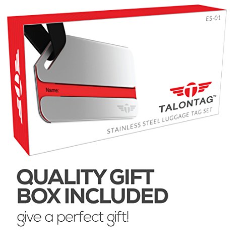 -. Brand : Talontag -. Color : Stainless Steel -. Department : unisex-adult (lage only) -. EAN : 0092145172360 -. Feature : High quality luxury lage tag forged of thick stainless steel metal (not flimsy aluminum like others). Instantly look sophisticated and professional with the TALONTAG ES-01. Designed with your privacy in mind to hide your personal details from onlookers. / Includes a lifetime lage tag replacement guarantee. If your lage or tag ever gets lost, we'll quickly ship out a replacement at no extra cost. / Easily personalized with your custom details using the either of the two supplied inserts (one in red and one in white). Also includes two options to attach the lage tag to your bag, one black leather and one sturdy steel metal loop. PDF template included to create as many inserts as you need. / High quality retail package makes it perfect as a gift for anyone in your life that loves to travel either for work or for fun. / Perfect lage accessory for high end lage brands such as Bluesmart, Hartmann, Travelpro, Tumi Adrienne Vittadini, Rimowa and others. -. Model : ES-01 -. PackageQuantity : 1 -. ProductGroup : Apparel -. ProductTypeName : LAGE -. Title : Privacy Lage Tag Stainless Steel Metal Includes Lifetime Never Lost Guarantee -. UPC : 092145172360