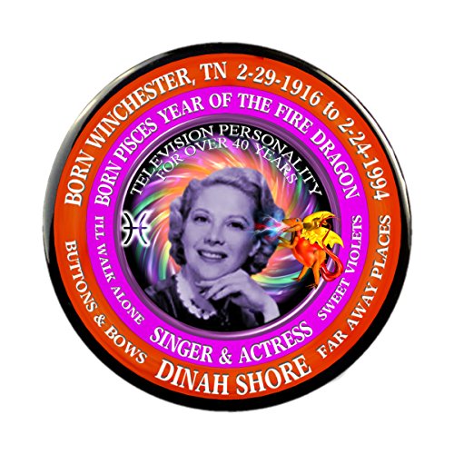 Product DescriptionPack-10 Dinah Shore Famous 50's Singer 3" Pin, Astrology Pisces Zodiac Fire Dragon0