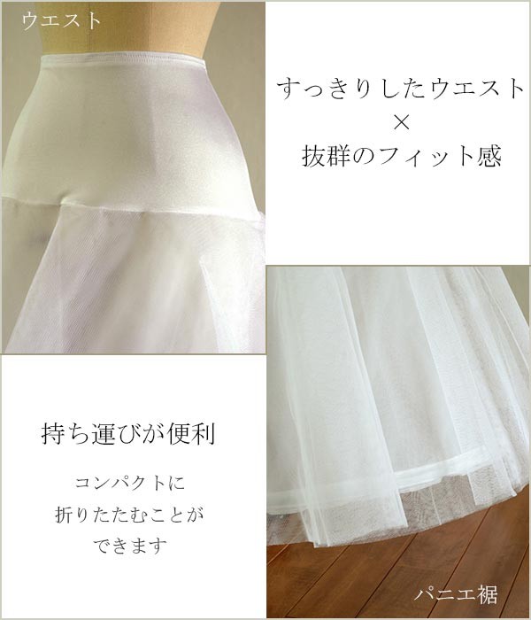 ⇒ 1本ワイヤー・Aライン用パニエ [P04] ⇒ ワイヤーなし・Aライン用チュールパニエ [P01] [P01] ⇒ 便利なドレスカバー&ハンガーセット [Y28] [Y28] |