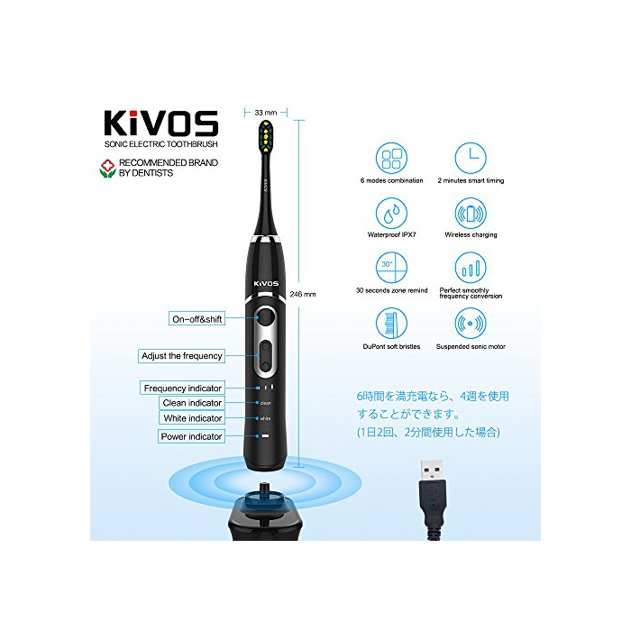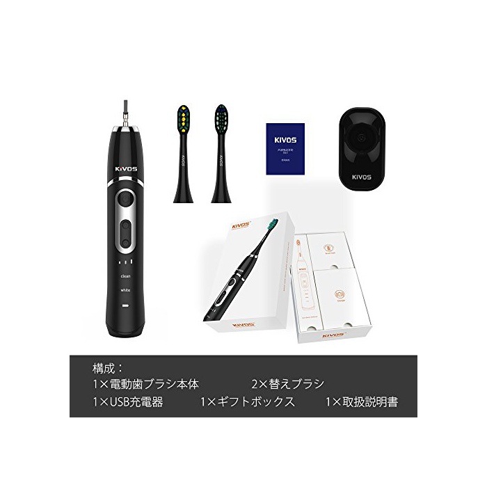 원본상품명: KIVOS音波式電動ブラシソニックSonic無接点充電式ブラシのUV紫外線除菌納ケス IPX7防水 旅行出張に最適 (S6114K ホワイト)