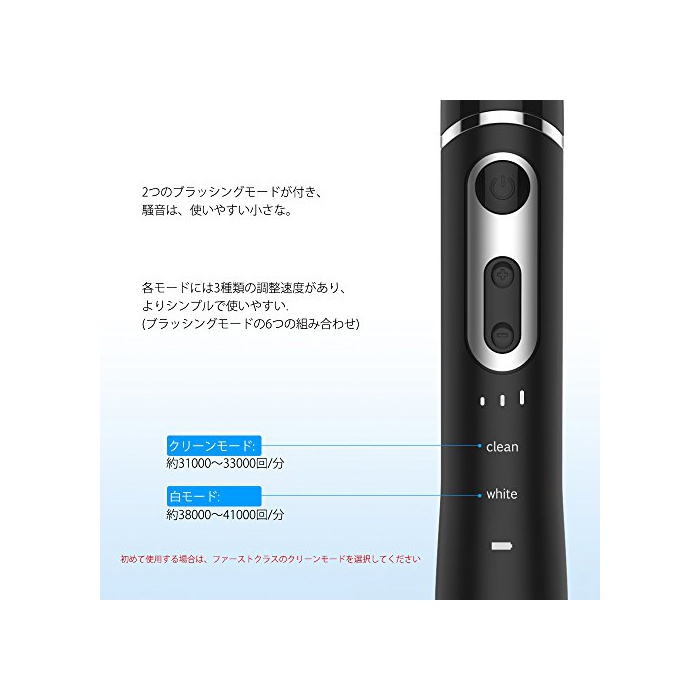 고주파 음파의 진동 기술:초고속31,000-41,000회/분진동 브러시 ''''마이크로《찻타》파''''고, 직접 진동 브러시《지》 《푸》,조용한,신속하게 치약을 용해 하므로,치아의 틈에 치아의 틈을 깊게 형성하고, 예쁜 치아의 틈의 치석 고, 음식의 파편,다이아몬드와 같은 이빨이 빛나는 것 뿐만 아니라,당신의 아름다운 웃는 얼굴.