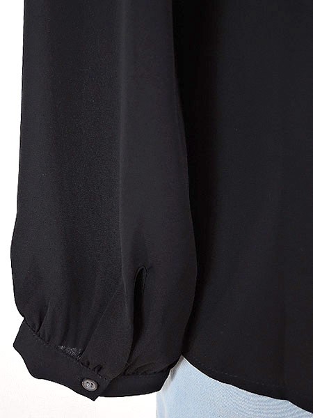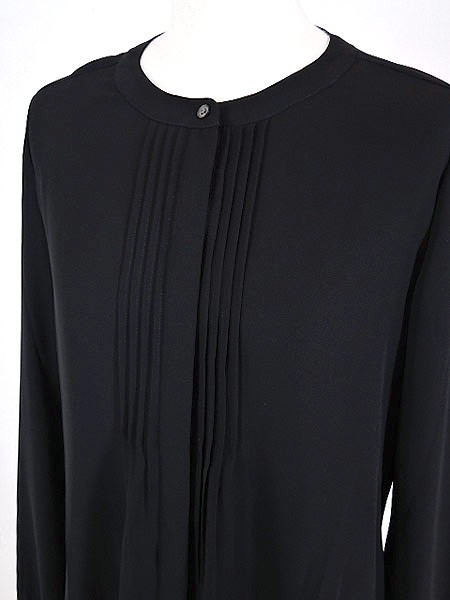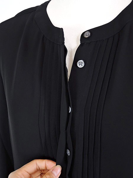 胸元のピンタックがポイントのノーカラーブラウスです。