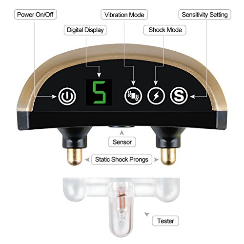 Studio : Woodeey Publisher : Woodeey Binding : Misc. Product Description Note: 1.The static shock prongs must hit the dog skin, otherwise it won't work in shock mode. 2.The tester is included, please test the bark collar before you use it. 3.Please adjust the strap to a appropriate length. If it's too loose, the collar would slid of from the neck and impact the performance. If it's too tight, that would make your dog uncomfortable. 4.To enter into the BEEP mode, please zero the vibration and shock mode. 5.Full charge: digital display 7. Low battery:digital display 0. 6.The charging port is under the bottom of the collar.There is a dustproof plug covered. Specification: Main Body:2.56*1.5*1 inch Strap Length:8.46-23.82 inch Shell Material:Plastic Working Mode:Beep/Vibration/Shock Sensitivity Grade: 0-7 Package Contents: 1*Anti Bark Collar 2*User Manual 3*Tester 4*Micro USB Cable