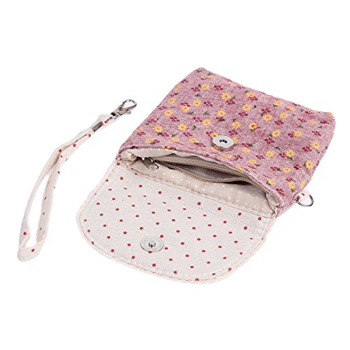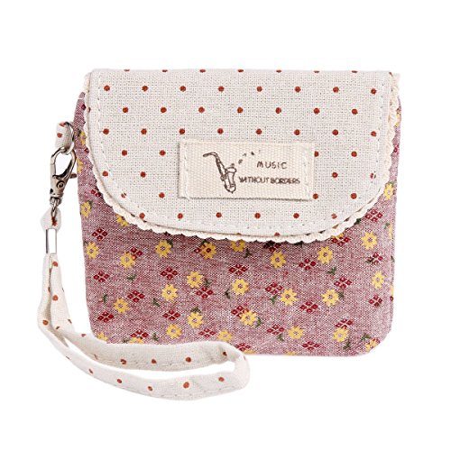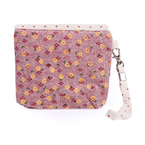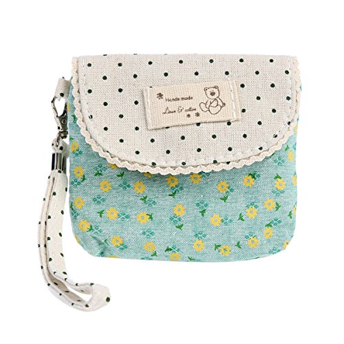 Product Description This purse is made of premium canvas. This pouch is spliced with polka dot and floral print. The flap can be fastened with magnet. Equipped with a detachable wristlet. Inside is 2 pouchs to hold your sanitary napkin and 1 zipper closure to save tiny things like keys. The bag has lining equipped. It can be used as coin purse or card case. Bag measurement approximately: bag length 12.2cm (5 inches); width 10.5cm (4.2 inches); height 1cm (0.39 inch); wristlet length 17cm (6.7 inches). 0