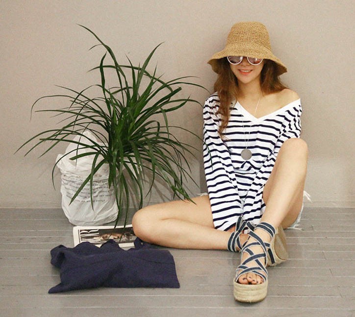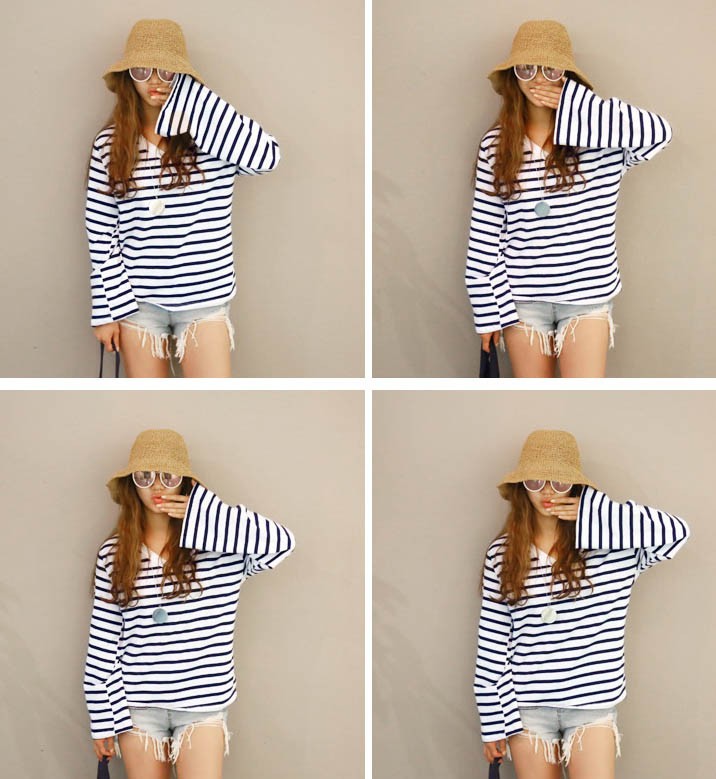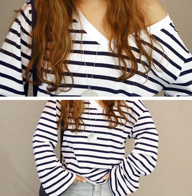 【入荷後営業日2,3日以内出荷予定 通関待ちや不良により出荷遅くなる場合はメールにてご連絡いたします。メール受信設定によっては正常に受信されない場合はございますので、 弊社からのメールを予め受信頂くようご設定くださいませ。】 トップス Tシャツ ボーダー 長袖 レディス レディース 春 新作 2018ボーダー柄ゆったりVネックチュニック◆サイズ:M着丈61肩幅43袖丈54胸囲90L着丈62肩幅44袖丈55胸囲94XL着丈63肩幅45袖丈56胸囲98◆素材:コットン85%+ポリエステル15%