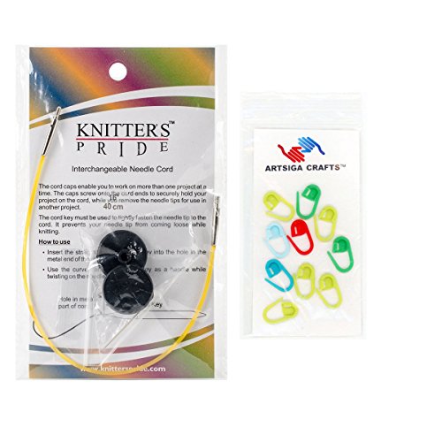 - Bundle includes 1 Knitter's Pride Interchangeable 8-inch (20cm) Yellow Cord; makes 16" (40cm) Bamboo Knitting Needle with 10 Artsiga Crafts Stitch Markers 800501