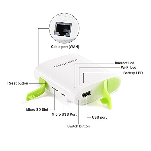 - Title : [6-in-1] RAVPower FileHub Wireless N Portable Pocket Travel Router Wireless Micro SD TF Card Reader with Built-in 6000mAh External Battery Pack,Wireless USB,Wireless Flash,Mobile Storage Media Sharing, WLAN Hot Spot & NAS File Server