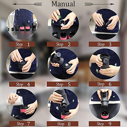 Newtion 에스프레소 머신 미니 수동 커피 메이커 아웃도어 에스프레소 수납 가방 그립 고무 부착 블랙