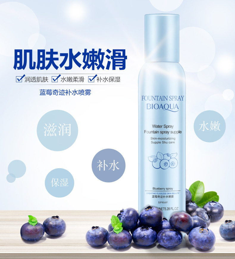 BIOAQUA Fountain Spray is a water spray to be soothing, anti-irritating and anti-free radical. It works to soothe, nourish and hydrate.It is an essential care suitable for all skin types.