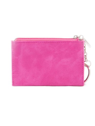 - Feature : women's card and key case / faux leather exterior / silver-tone hardware / logo plaque, top zipper closure / exterior open pocket, attached keychain