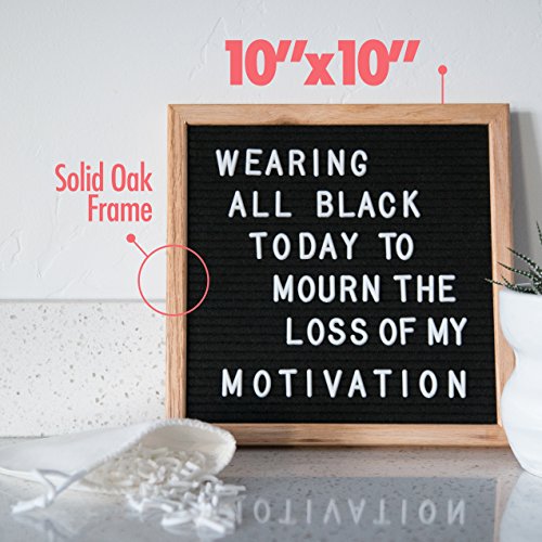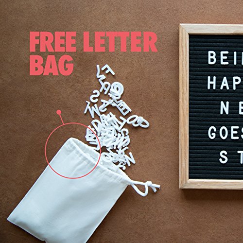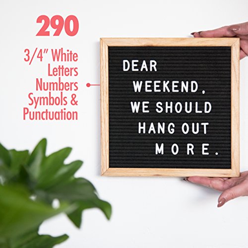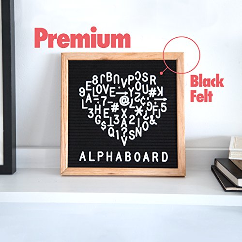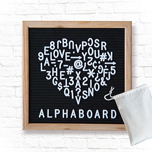 Alphaboard Changeable Felt Letter Board: Handmade 10" x 10" Oak Wood Frame with 290 White 3/4" Letters, Numbers, & Punctuation, Mounting Wall Hook, Drawstring Letter Bag, Vintage Style, Charcoal Black