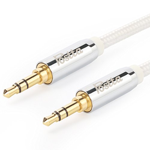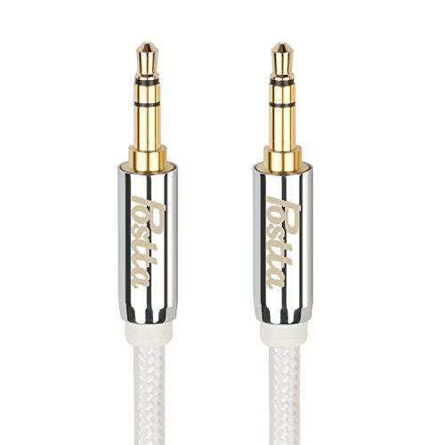 Postta 3.5MM Stereo Audio cable(10 Feet)Male to Male AUX Cable with Metal Shell 24K Gold Plated connectors for car stereos,Smartphones,Tablets,PC,Media Players and More-White