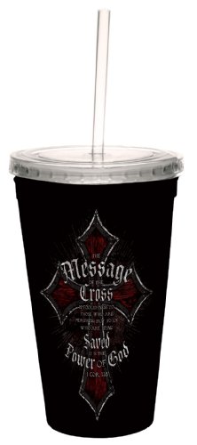 Tree-Free Greetings cc34222 Message of The Cross Metal: 1 Corinthians 1:18 Artful Traveler Double-Walled Cool Cup with Reusable Straw, 16-Ounce