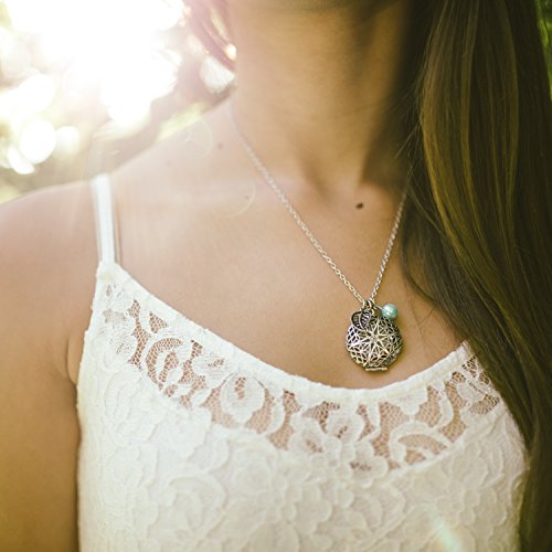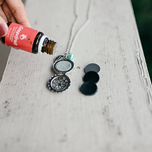 Essential Oil Diffuser Necklace with 4 Leather Discs, Silver Pendant 18 Chain, Young Living Doterra Oils