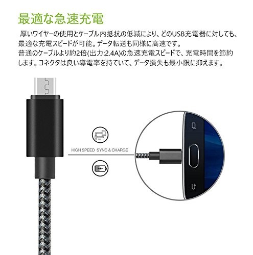 【最適な急速充電】 厚いワイヤーの使用とケーブル内抵抗の低減により、どのUSB充電器に対しても、 最適な充電スピードが可能。データ転送も同様に高速です。