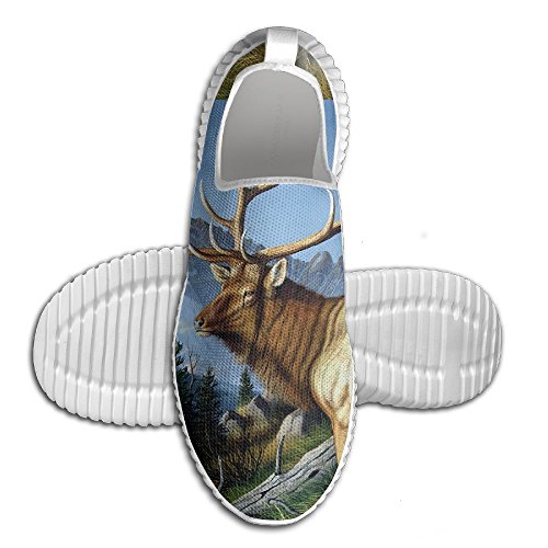 (Yellow House)/Men's/Athletic Outdoor/DIRECT FROM USA/Men's Sport Sneakers Air Mesh Lightweight Deer Elk Mountain Slip On Walking Shoes Breathable Ru...