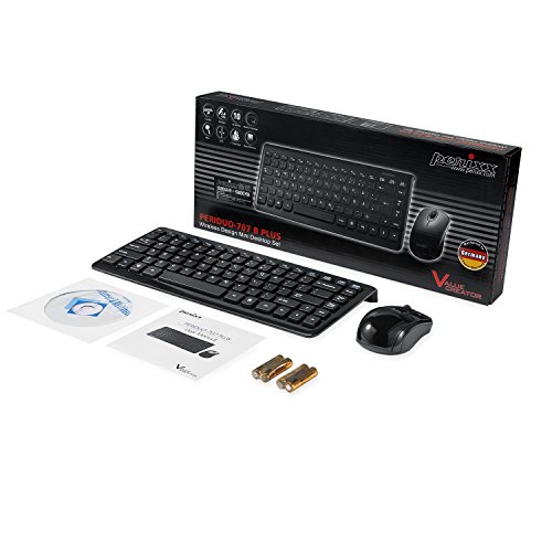 A wireless Mini keyboard and mouse set in an elegant piano finish. Compatible with major operating systems and equipped with a 2.4 GHz Nano USB receiver. This has a reception range of up to 10M bringing a comfortable positioning is made possible. 11 multimedia keys for audio, Email, Internet and more facilitate the work. The set is complemented by a 1000 DPI Optical mouse with on / off switch.Feature