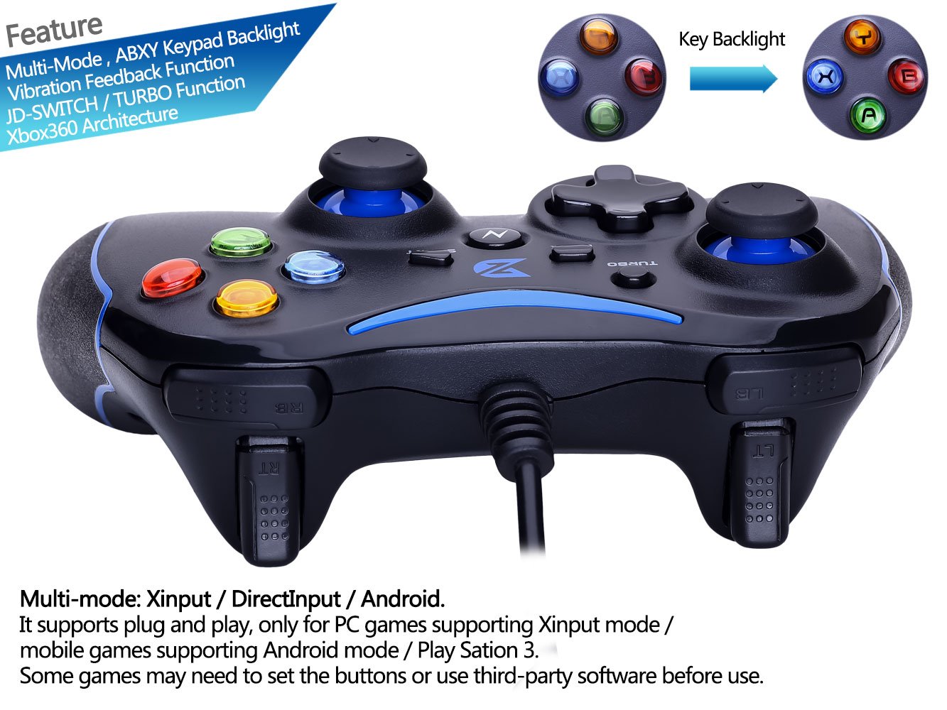 (3) Multi mode: Xinput / DirectInput / Android