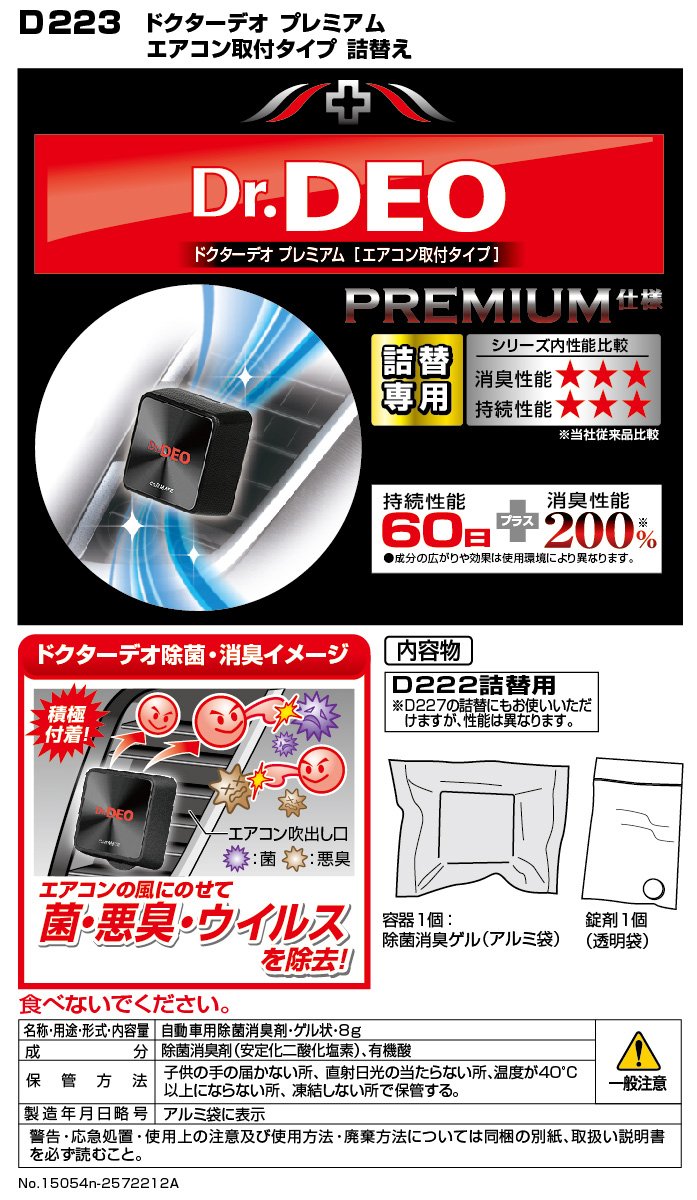 Carmate vehicles for decontamination deodorant Doctor Deo (Dr.DEO) premium unscented for air conditioning installation type D222 refill stabilized chlorine dioxide 8g D223